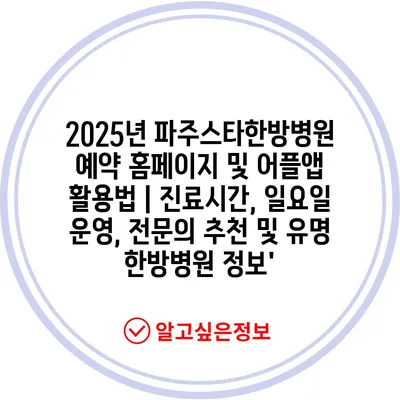2025년 파주스타한방병원 예약 홈페이지 및 어플앱 활용법 | 진료시간, 일요일 운영, 전연락 추천 및 유명 한방병원 정보’에 대해 자주 묻는 질문 TOP 5