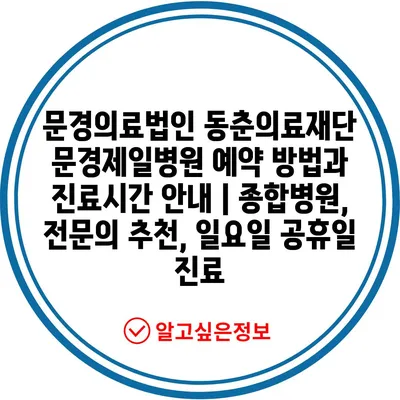 문경의료법인 동춘의료재단 문경제일병원 예약 방법과 진료시간 공지 | 종합병원, 전연락 추천, 일요일 공휴일 진료 에 대해 자주 묻는 질문 TOP 5