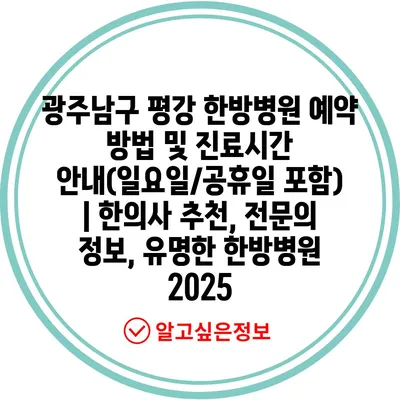광주남구 평강 한방병원 예약 방법 및 진료시간 공지(일요일/공휴일 포함) | 한의사 추천, 전연락 정보, 유명한 한방병원 2025 에 대해 자주 묻는 질문 TOP 5
