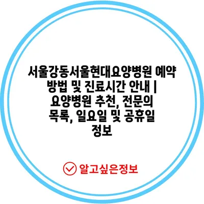 ✅ 강동서울현대요양병원의 예약 방법과 진료시간을 지금 바로 알아보세요.