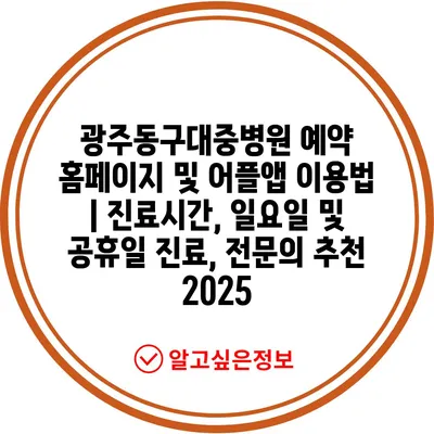광주동구대중병원 예약 홈페이지 및 어플앱 이용법 | 진료시간, 일요일 및 공휴일 진료, 전연락 추천 2025에 대해 소개합니다.