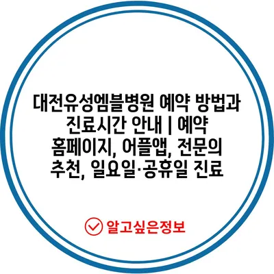 ✅ 대전유성엠블병원의 진료시간과 예약 방법을 자세히 알아보세요.