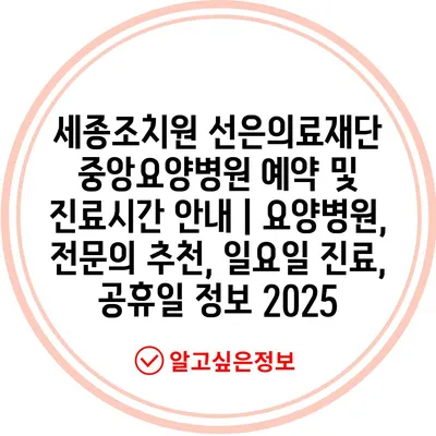 세종조치원 선은의료재단 중앙요양병원 예약 및 진료시간 공지 | 요양병원, 전연락 추천, 일요일 진료, 공휴일 정보 2025 에 대해 자주 묻는 질문 TOP 5