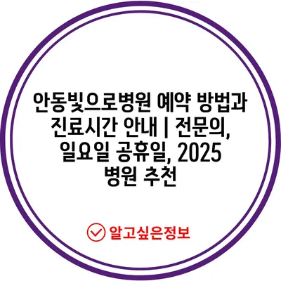 안동빛으로병원 예약 방법과 진료시간 안내 | 전문의, 일요일 공휴일, 2025 병원 추천