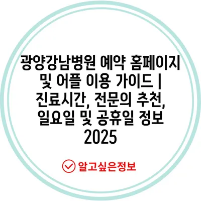 광양강남병원 예약 홈페이지 및 어플 이용 설명서 | 진료시간, 전연락 추천, 일요일 및 공휴일 정보 2025에 대해 소개합니다.