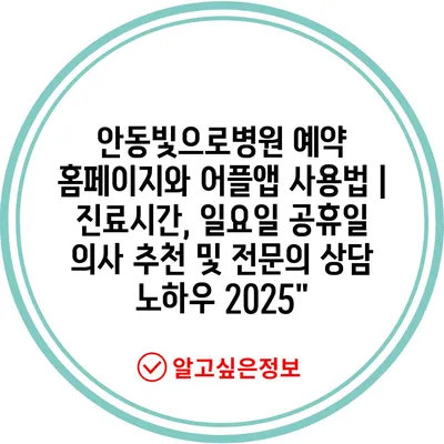 안동빛으로병원 예약 홈페이지와 어플앱 사용법 | 진료시간, 일요일 공휴일 의사 추천 및 전연락 상담 노하우 2025에 대해 알아보겠습니다.