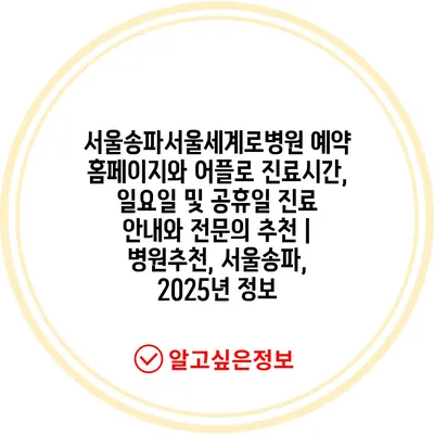 서울송파서울세계로병원 예약 홈페이지와 어플로 진료시간, 일요일 및 공휴일 진료 공지와 전연락 추천 | 병원추천, 서울송파, 2025년 정보 에 대해 자주 묻는 질문 TOP 5