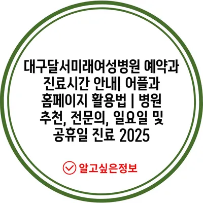 ✅ 대구달서미래여성병원의 예약 및 진료 시간에 대한 모든 정보를 확인하세요.
