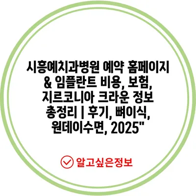 시흥예치과병원 예약 홈페이지 & 임플란트 비용, 보험, 지르코니아 크라운 정보 총정리 | 후기, 뼈이식, 원데이수면, 2025에 대해 알아보겠습니다.