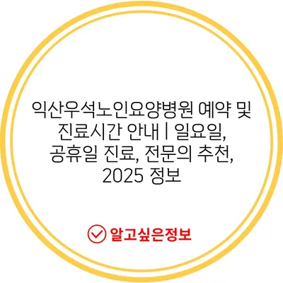 익산우석노인요양병원 예약 및 진료시간 안내 | 일요일, 공휴일 진료, 전문의 추천, 2025 정보