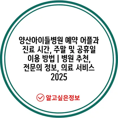 양산아이들병원 예약 어플과 진료 시간, 주말 및 공휴일 이용 방법 | 병원 추천, 전연락 정보, 의료 서비스 2025에 대해 알아보겠습니다.
