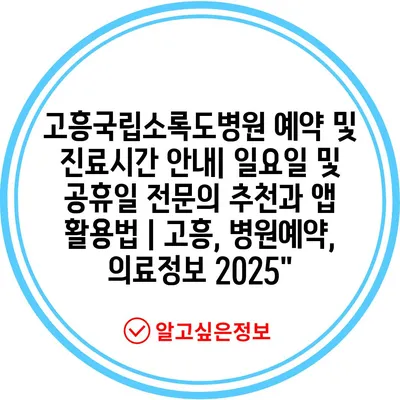 고흥국립소록도병원 예약 및 진료시간 공지| 일요일 및 공휴일 전연락 추천과 앱 활용법 | 고흥, 병원예약, 의료정보 2025