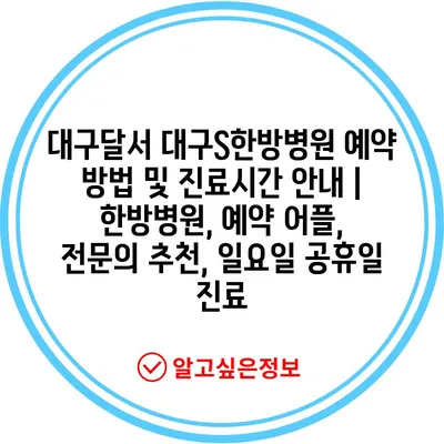 ✅ 대구S한방병원의 예약 방법과 꿀팁을 알아보세요.