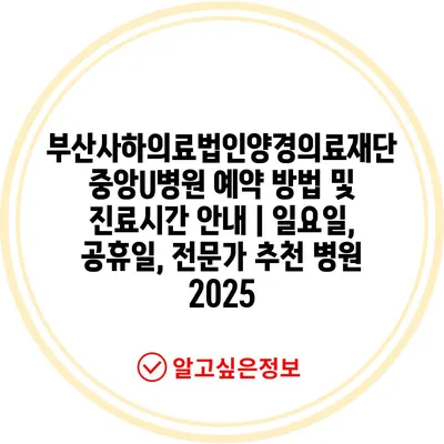 부산사하의료법인양경의료재단 중앙U병원 예약 방법 및 진료시간 공지 | 일요일, 공휴일, 전문가 추천 병원 2025 에 대해 자주 묻는 질문 TOP 5