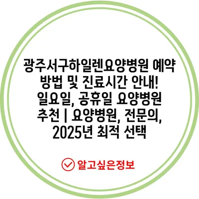 광주서구하일렌요양병원 예약 방법 및 진료시간 공지! 일요일, 공휴일 요양병원 추천 | 요양병원, 전연락, 2025년 최적 선택 에 대해 자주 묻는 질문 TOP 5
