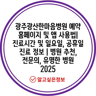 ✅ 광주광산한마음병원의 진료시간과 예약 방법을 자세히 알아보세요.