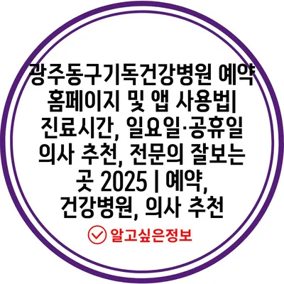 ✅ 광주동구기독건강병원의 예약 방법과 진료 시간을 알아보세요.