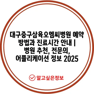 ✅ 대구중구삼육오엠씨병원 예약 방법을 자세히 알아보세요.