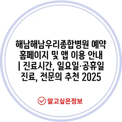 해남해남우리종합병원 예약 홈페이지 및 앱 이용 공지 | 진료시간, 일요일·공휴일 진료, 전연락 추천 2025