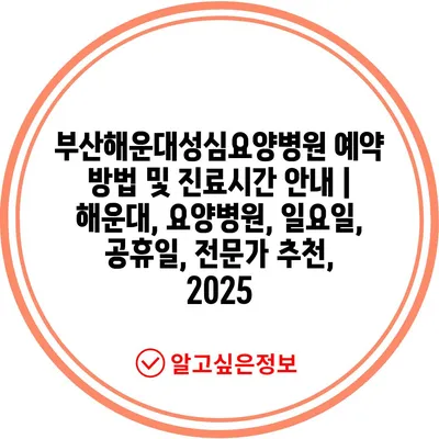 부산해운대성심요양병원 예약 방법 및 진료시간 공지 | 해운대, 요양병원, 일요일, 공휴일, 전문가 추천, 2025 에 대해 자주 묻는 질문 TOP 5