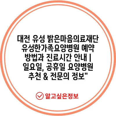 대전 유성 밝은마음의료재단 유성한가족요양병원 예약 방법과 진료시간 공지 | 일요일, 공휴일 요양병원 추천 & 전연락 정보에 대해 자주 묻는 질문 TOP 5