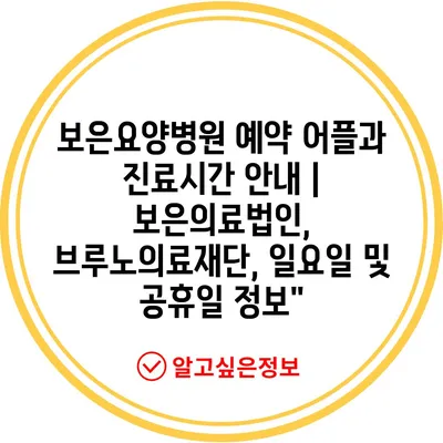 보은요양병원 예약 어플과 진료시간 공지 | 보은의료법인, 브루노의료재단, 일요일 및 공휴일 정보