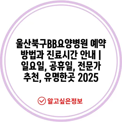 울산북구BB요양병원 예약 방법과 진료시간 공지 | 일요일, 공휴일, 전문가 추천, 유명한곳 2025