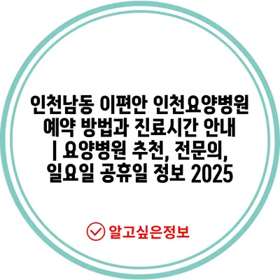 인천남동 이편안 인천요양병원 예약 방법과 진료시간 공지 | 요양병원 추천, 전연락, 일요일 공휴일 정보 2025 에 대해 자주 묻는 질문 TOP 5