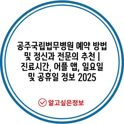 공주국립법무병원 예약 방법 및 정신과 전연락 추천 | 진료시간, 어플 앱, 일요일 및 공휴일 정보 2025 에 대해 자주 묻는 질문 TOP 5