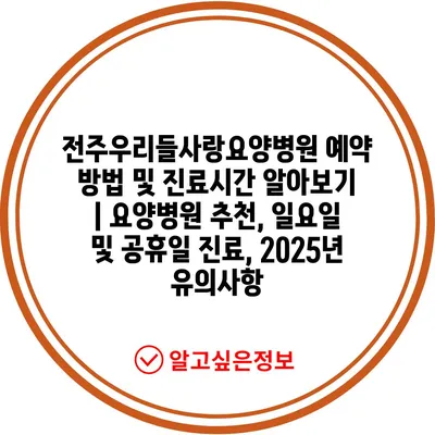 전주우리들사랑요양병원 예약 방법 및 진료시간 알아보기 | 요양병원 추천, 일요일 및 공휴일 진료, 2025년 유의사항 에 대해 자주 묻는 질문 TOP 5
