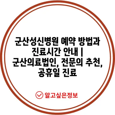 군산성신병원 예약 방법과 진료시간 안내 | 군산의료법인, 전문의 추천, 공휴일 진료