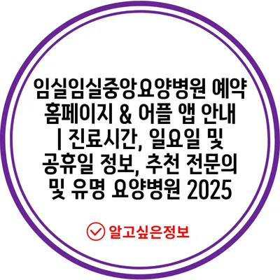 임실임실중앙요양병원 예약 홈페이지 & 어플 앱 공지 | 진료시간, 일요일 및 공휴일 정보, 추천 전연락 및 유명 요양병원 2025 에 대해 자주 묻는 질문 TOP 5