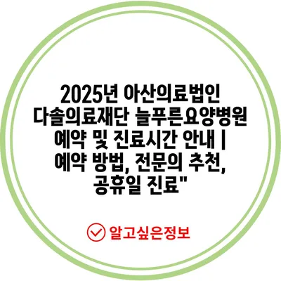 2025년 아산의료법인 다솔의료재단 늘푸른요양병원 예약 및 진료시간 공지입니다.