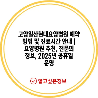 고양일산현대요양병원의 진료시간 및 예약 방법을 지금 바로 알아보세요!