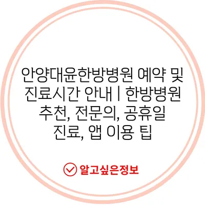 안양대윤한방병원 예약 및 진료시간 공지 | 한방병원 추천, 전연락, 공휴일 진료, 앱 이용 팁 에 대해 자주 묻는 질문 TOP 5