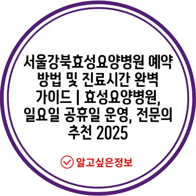 서울강북효성요양병원 예약 방법 및 진료시간 완벽 설명서 | 효성요양병원, 일요일 공휴일 운영, 전연락 추천 2025에 대해 자세히 공지제공합니다.