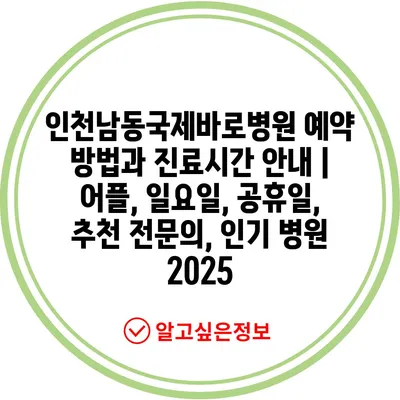 ✅ 인천남동국제바로병원의 진료시간과 예약 방법을 알아보세요!