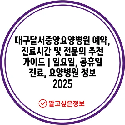 대구달서중앙요양병원 예약, 진료시간 및 전연락 추천 설명서 | 일요일, 공휴일 진료, 요양병원 정보 2025에 대해 알아보겠습니다.