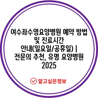 여수좌수영요양병원 예약 방법 및 진료시간 공지(일요일/공휴일) | 전연락 추천, 유명 요양병원 2025 에 대해 자주 묻는 질문 TOP 5