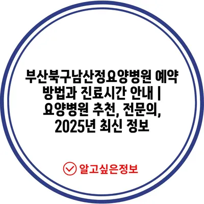 부산북구남산정요양병원 예약 방법과 진료시간 공지 | 요양병원 추천, 전연락, 2025년 최신 정보에 대해 자주 묻는 질문 TOP 5