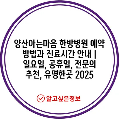 ✅ 양산아는마음 한방병원 예약 방법을 자세히 알아보세요!