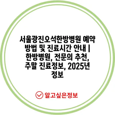 ✅ 서울광진오석한방병원의 예약 방법과 진료시간을 알아보세요.
