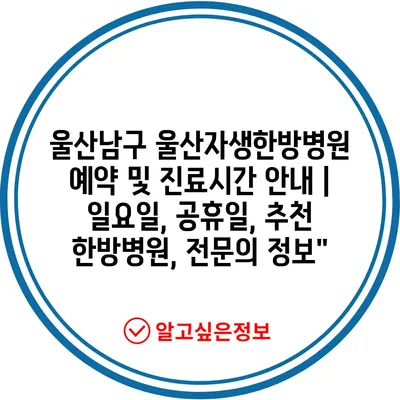 울산남구 울산자생한방병원 예약 및 진료시간 공지 | 일요일, 공휴일, 추천 한방병원, 전연락 정보에 대해 자주 묻는 질문 TOP 5