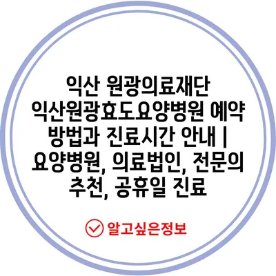 ✅ 익산원광효도요양병원의 예약 방법을 자세히 알아보세요.