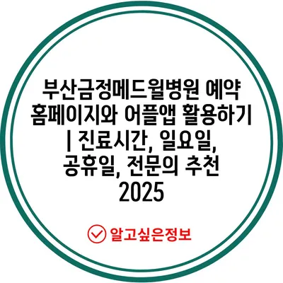 부산금정메드윌병원 예약 홈페이지와 어플앱 활용하기 | 진료시간, 일요일, 공휴일, 전연락 추천 2025에 대해 자주 묻는 질문 TOP 5