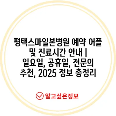 평택스마일본병원 예약 어플 및 진료시간 공지 | 일요일, 공휴일, 전연락 추천, 2025 정보 총정리 에 대해 자주 묻는 질문 TOP 5
