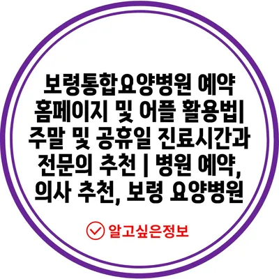 ✅ 보령통합요양병원의 진료시간과 예약 방법을 알아보세요!