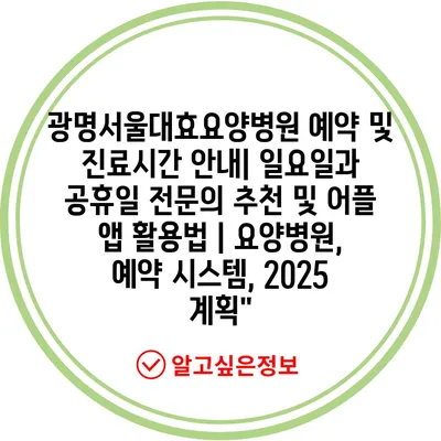 광명서울대효요양병원 예약 및 진료시간 공지| 일요일과 공휴일 전연락 추천 및 어플 앱 활용법 | 요양병원, 예약 시스템, 2025 계획에 대해 소개합니다.