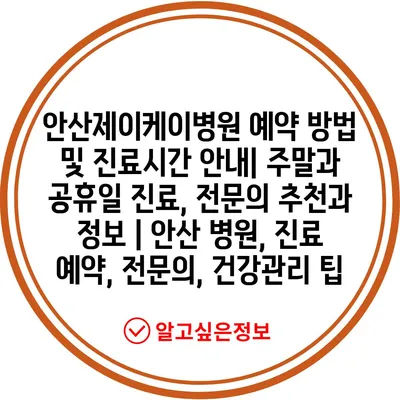 안산제이케이병원 예약 방법 및 진료시간 공지| 주말과 공휴일 진료, 전연락 추천과 정보 | 안산 병원, 진료 예약, 전연락, 건강관리 팁 에 대해 자주 묻는 질문 TOP 5