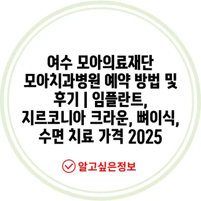 여수 모아의료재단 모아치과병원 예약 방법 및 후기 | 임플란트, 지르코니아 크라운, 뼈이식, 수면 치료 가격 2025에 대해 알아보겠습니다.
